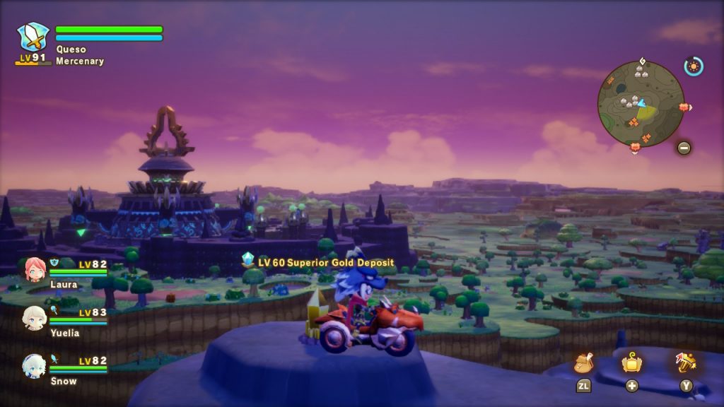 ¿Y hay más? ¡Por supuesto que hay más! Esta weá no se acaba. En el presente tenemos nuestra base, que es una isla. En ella tenemos varias cosas. Obviamente, lo primero es la base en sí misma, que podemos amononar a nuestra pinta como si estuviéramos jugando Animal Crossing. Podemos craftear mueblecitos y tonteras para adornarla; hacerles casitas a nuestros monos favoritos y todas esas cosas. También nos da acceso al multiplayer local (sólo en la Switch) y online (en todo, con crossplay y todas las vainas). Este online nos permite jugar prácticamente todos los aspectos del juego con amigos, excepto por la progresión de la historia. Pero a nadie le interesa eso. Tenemos también un dungeon que se puede randomizar, y que sirve para farmear algunos ítems raros… si los dioses del RNG así lo quieren.