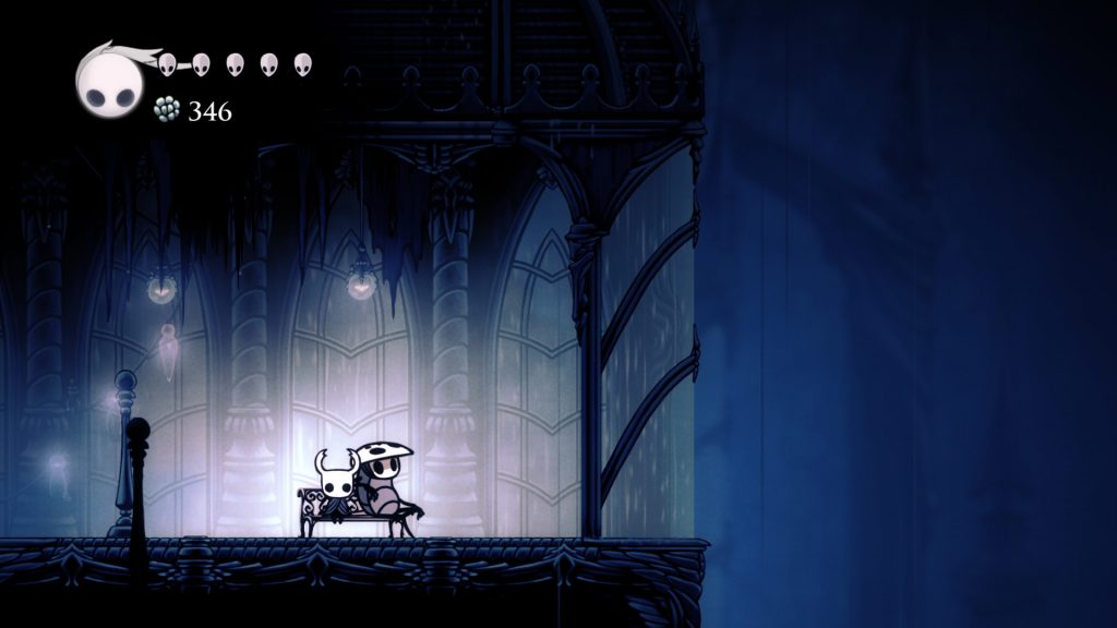 Una de mis escenas favoritas en estos años recientes es en Hollow Knight cuando llegas a City of Tears y te sientas en el banco donde está Quirrel. Es una escena que me inspira mucho, por cómo la música se presenta, por cómo cada rincón está meticulosamente creado sin dejar de lado algo de poca importancia —el escuchar la voz de Marissa de fondo—, y notar como cada detalle crea un mundo imaginario perfecto para la ocasión, los vestigios de un mundo muerto pero nostálgico. En cierto sentido, el arte se siente como una ciencia que busca afectarnos de una u otra forma, a veces sutil, a veces muy directa, pero siempre dándote algo.